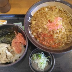 朝そば:焼鯖炙りたらこごはん530円
